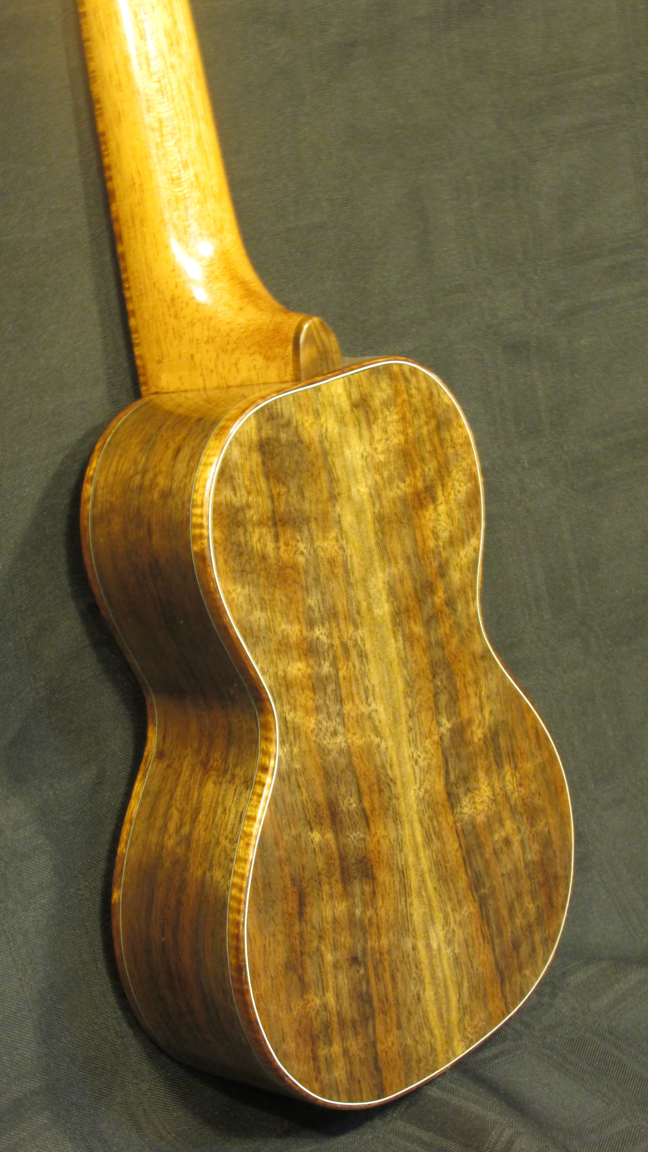 Tenor Ukulele with Oregon Myrtle back, sides and top; Walnut neck and Ebony fingerboard and bridge.
