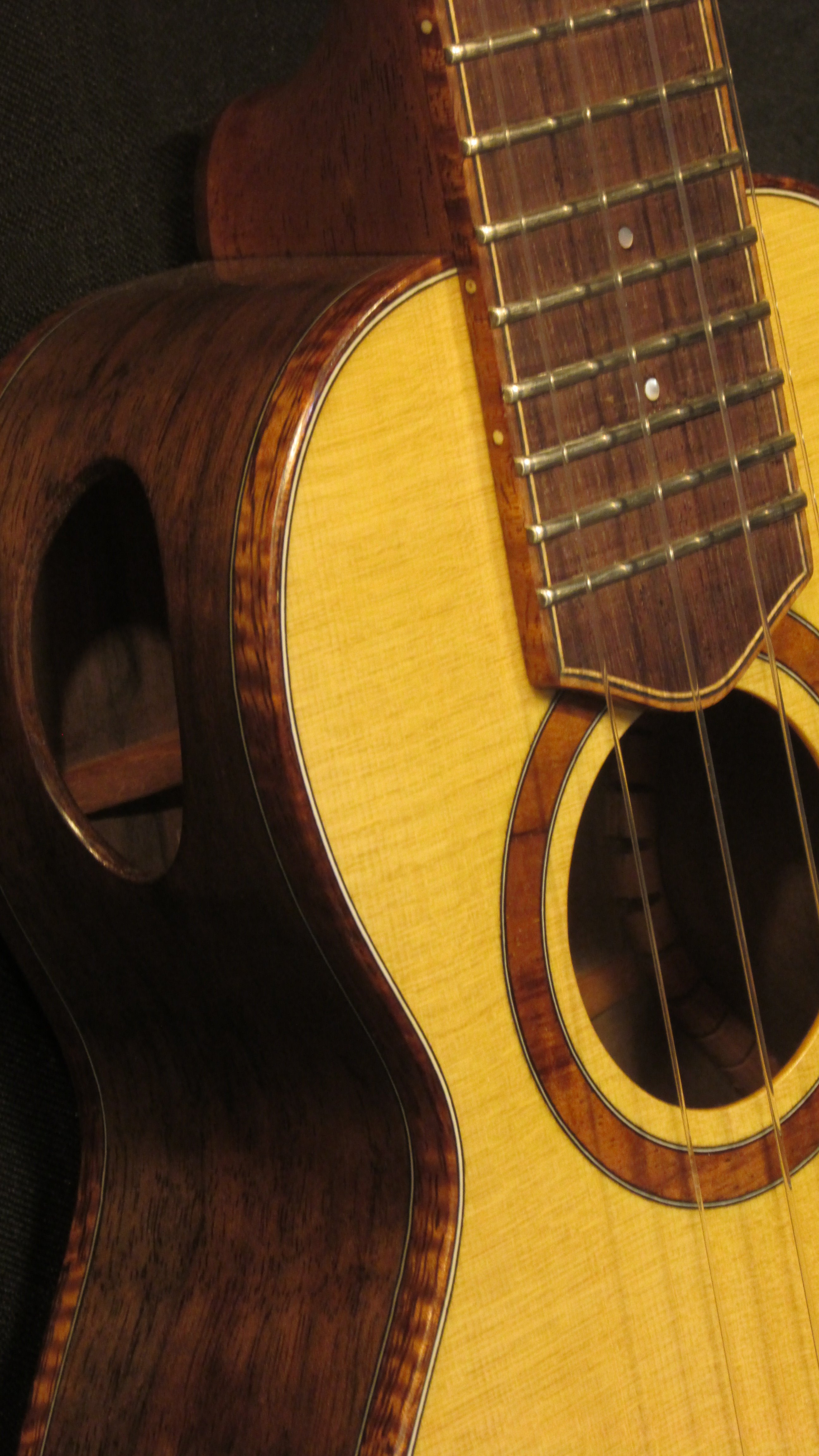 January, 2025 This is my first lute build. It’s based on the Georg Gerle Lute housed in the Kunsthistorische Museum In Vienna. The original was built in the 1560s as a 6-couse instrument with Ivory ribs. My version uses Mahogany for the ribs, a Carpathian Spruce top, a Macassar Ebony fingerboard with neck and pegbox veneers of Macassar Ebony and… (more…)